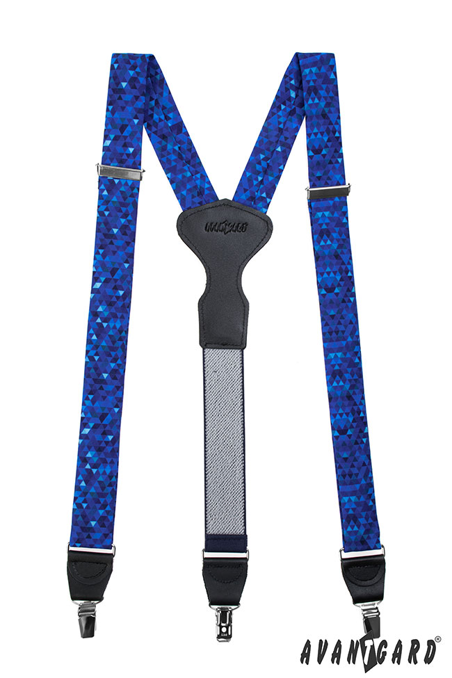 Látkové šle Y s koženým středem a zapínáním na klipy - 34 mm - v dárkovém balení, Modrá, tmavě modrá kůže